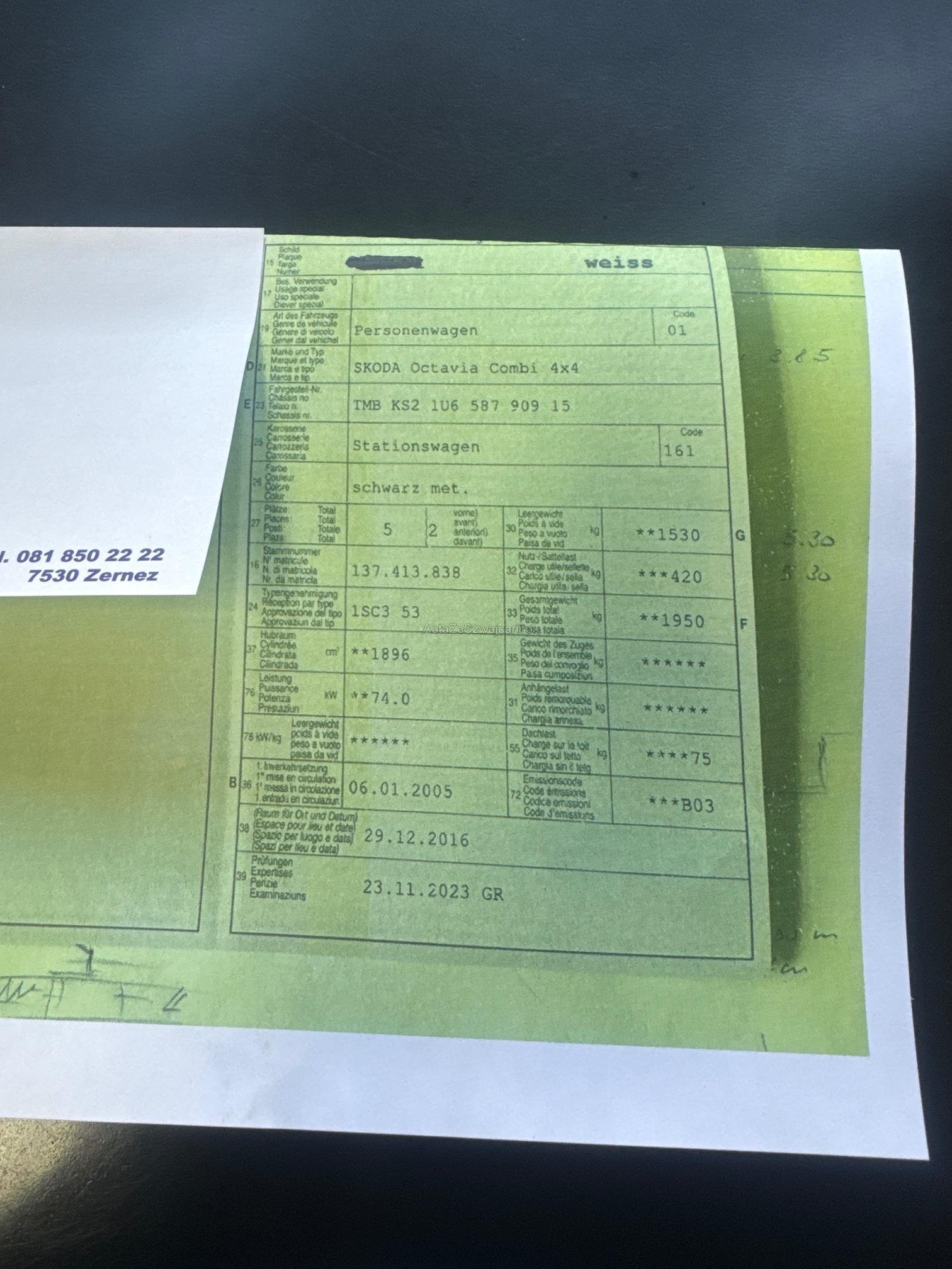 | Kommentar | Am Fahrzeug wurde kein Werkstatttest gemacht (für sichtbare oder nicht sichtbare Mängel wird nicht gehaftet). Wir testen und kontrollieren nicht alle Funktionen vom Fahrzeug. Das Risiko liegt somit vollumfänglich beim Käufer. Nachdem der Höchstbietende den Zuschlag erhalten hat, gibt es keine Nachverhandlung, auch wenn nicht deklarierte Mängel zum Vorschein kommen sollten. Ab Platz ohne Garantie, Wandelung und Minderung werden wegbedungen. Radlager macht Geräusche ist aber Fahrbar. |
