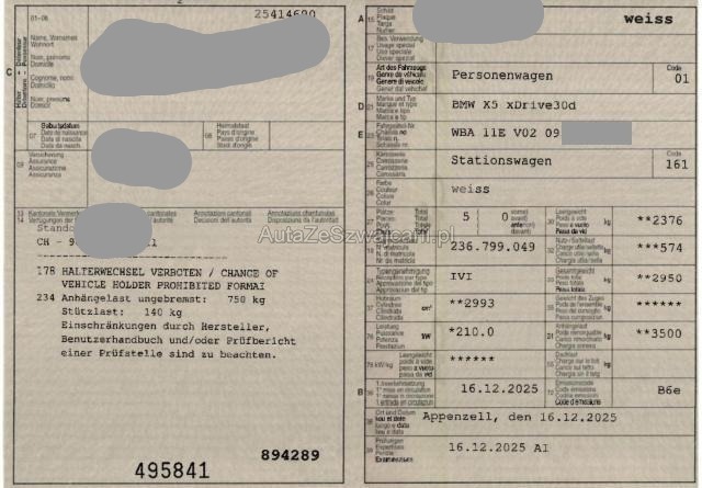 | Condition_and_Equipment | Bereifung Fahrzeug wird mit Winterräder abgegeben. Sonstiges Fahrzeugdokumente vorhanden. Schlüssel Nur ein Schlüssel vorhanden. Hersteller- und Gewährleistungsbedingungen Die Fahrzeuggarantie oder Gewährleistung wird möglicherweise nicht vom Hersteller fortgeführt Weitere wichtige Hinweise Achtung Zusätzlich zum Restwertgebot wird eine Handlinggebühr von CHF 500.00 erhoben. Der Kilometerstand wurde abgelesen. Gebrauchsspuren und kleinere Vorschäden sind möglich. Keine weitere Bereifung vorhanden. Vor Ort waren: 2 Schlüssel und Ausweis vorhanden. Motor und Getriebe wurde nicht geprüft. Keine Gewähr auf Serien- und Sonderaustattungen. Weitere nicht aufgeführte und nicht fotografisch festgehaltene oder verdeckte Schäden sind möglich! --- Rechts Rechte Seite beschädigt. Anstoss rechts im Bereich der B-Säule. Anstoss rechts im Bereich der C-Säule. Tür vorne rechts ist eingedrückt. Tür hinten rechts ist eingedrückt. Heck Seitenwand hinten rechts eingedrückt/aufgestaucht. Achse Risiko Hinterachse. Elektrik Risiko Steuergeräte. Kabelstränge verbrannt, beschädigt, abgerissen. Sonstige Schäden Div.Carrosserie Teile sind leicht beschädigt. Weitere Beschädigungen Felge hinten rechts beschädigt. Aussenspiegel rechts beschädigt. Weitere nicht aufgeführte und nicht fotografisch festgehaltene oder verdeckte Schäden sind möglich! --- Serienaustattung Klimaautomatik inkl. Mikrofilter Fahrer und Beifahrer-Airbag Diebstahlwarnanlage Seitenairbag für Fahrer und Beifahrer Sport-Lederlenkrad Lordosenstütze für Fahrer und Beifahrer Elektrische Sitzverstellung mit Memory Reifendruck-Kontrollsystem RDC Automatische Heckklappenbetätigung Gepäckraum-Trennnetz Antiblockiersystem ABS Kindersitzbefestigung Isofix Sportsitze für Fahrer und Beifahrer HiFi-Lautsprechersystem Komfortzugang Kopfairbags vorne + hinten Park Distance Control PDC vorn und hinten Dieselpartikelfilter Geschwindigkeitsregelung mit Bremsfunktion Fernlichtassistent Deaktivierung Beifahrerairbag Digital audio DAB-Tuner Ambientebeleuchtung Auto Start Stopp Funktion Dachreling Aluminium satiniert Details siehe gültige Preisliste des Importeurs Keine Gewähr auf die Angaben der Serienausstattungen Active Protection ConnectedDrive Services Edelholzausführung Fineline Stripe BMW Service Plus 10 Jahre/ 100'000 km Teleservice Intelligenter Notruf Leichtmetallräder V-Speiche 734 Pack Connected Professional Parking Assistant Aufmerksamkeitsassistent Live Cockpit Plus Driving Assistant Ablage für Wireless Charging Personal eSIM BMW Repair 3 Jahre/ 100'000 km Pack Aussenspiegel erweitert Sonderausstattung Anhängerkupplung Klimaautomat 4-Zonen inkl. Mikrofilter Edelholzausführung Fineline hochglanz Bereifung mit Notlaufeigenschaft Harman/Kardon Surround Sound System Adaptive LED-Scheinwerfer Sitzheizung vorne + hinten Pack Wärme-Komfort vorne Komfortsitze elektrisch verstellbar vorne Driving Assistant Professional Getränkehalter temperiert Parking Assistant Professional Live Cockpit Professional Pack Comfort Pack Innovation |