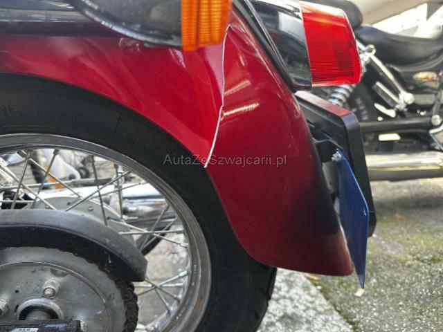 | Condition_and_Equipment | Zustand Fahrzeug ist fahrbar. Schlüssel Nur ein Schlüssel vorhanden. Zweirad-Kategorie Motorrad --- Heck Heck eingedrückt. Heckrahmen deformiert. Schwinge hinten Risiko. Verschalung hinten gebrochen. Sonstige Schäden Div. Teile sind leicht beschädigt. |