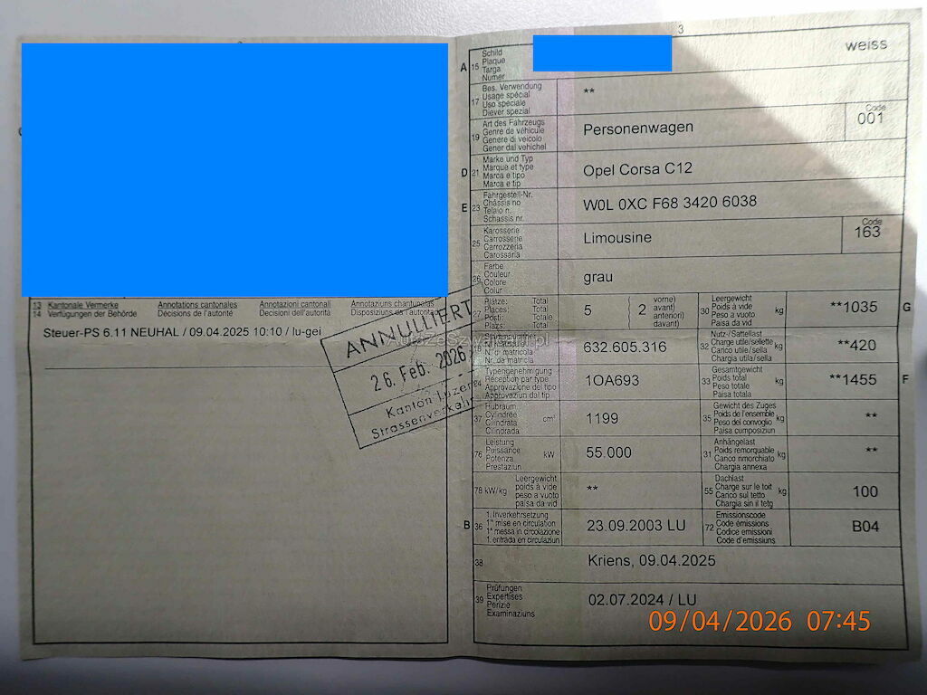 | Typenschein | 1OA693 |