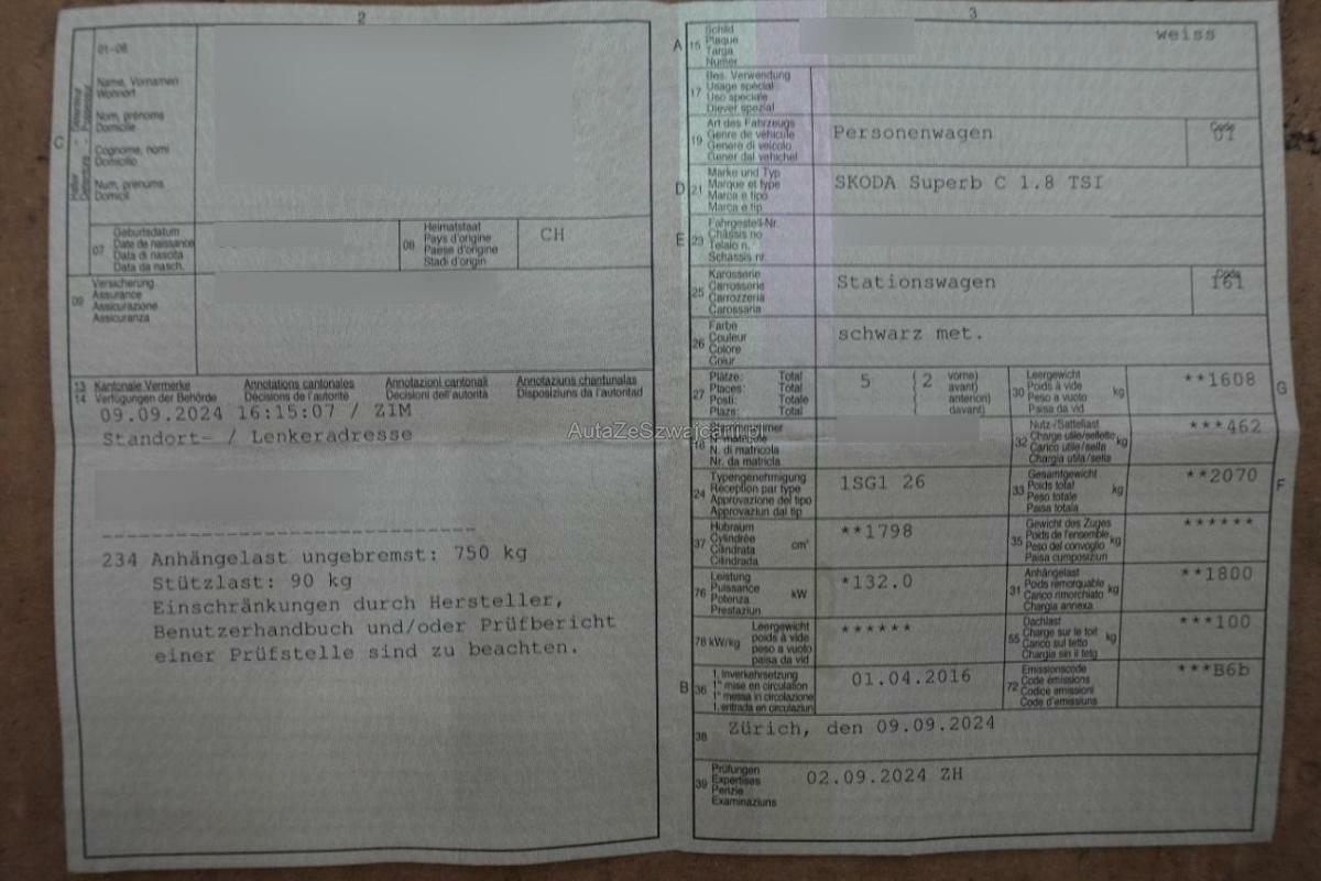 | Fahrzeugausweis | Vorhanden |
