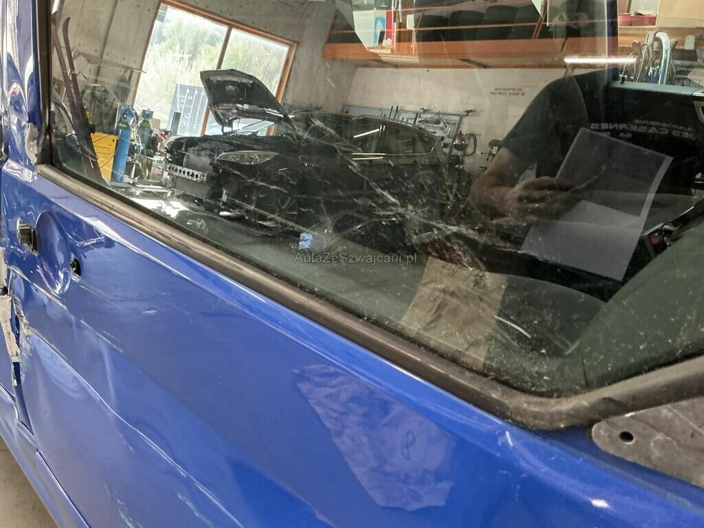Aile avant droite, porte avant droite, porte coulissante droite, aile arrière droite enfoncées et déchirées. Rétroviseur droit cassé et vitre avant droite griffée.