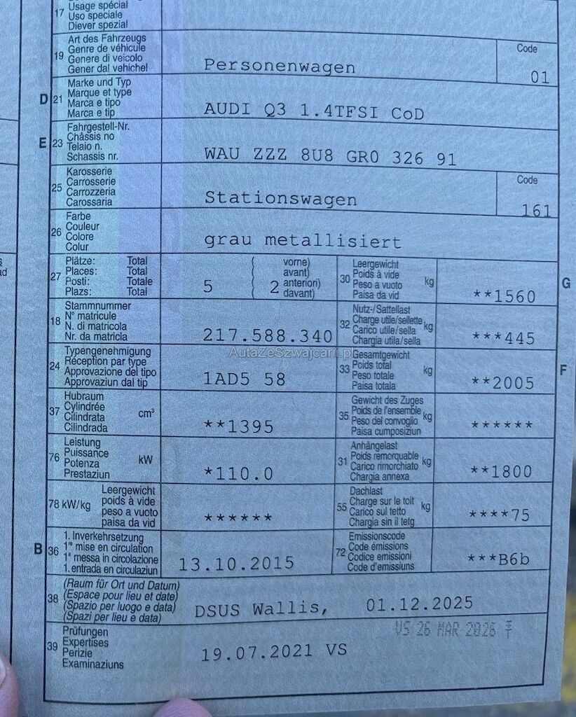 | Typ | Q3 1.4 TFSI |