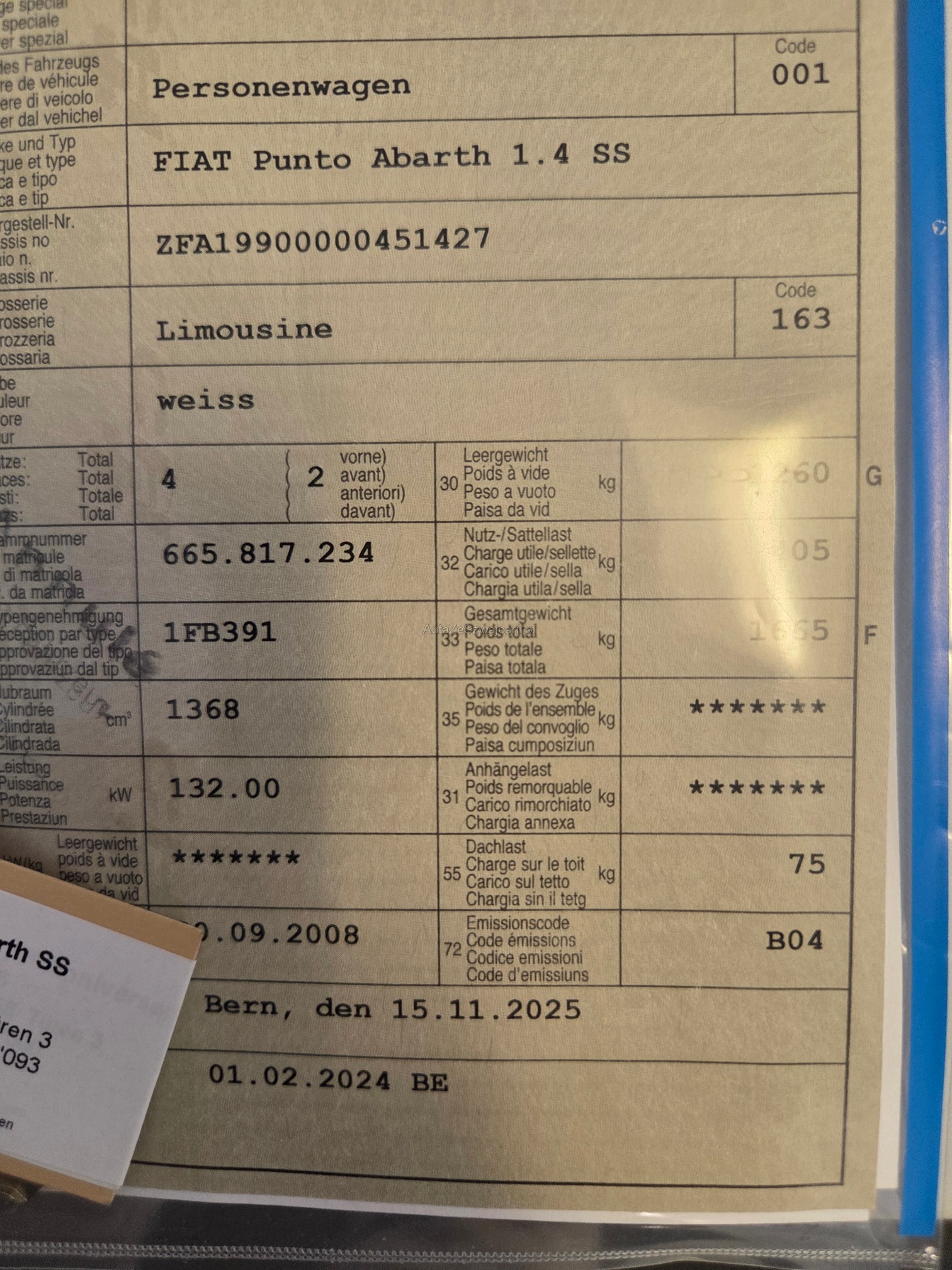 | VIN | ZFAXXX |