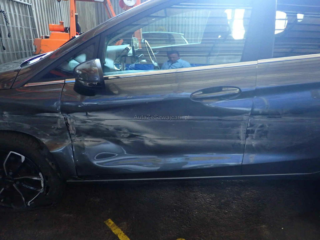 Anprall Seite L , dabei wurde die gesamte linke Seite beschädigt, die Seitenwand muss ersetzt werden, die A-Säule muss gerichtet werden. Die Achse VL ist beschädigt
