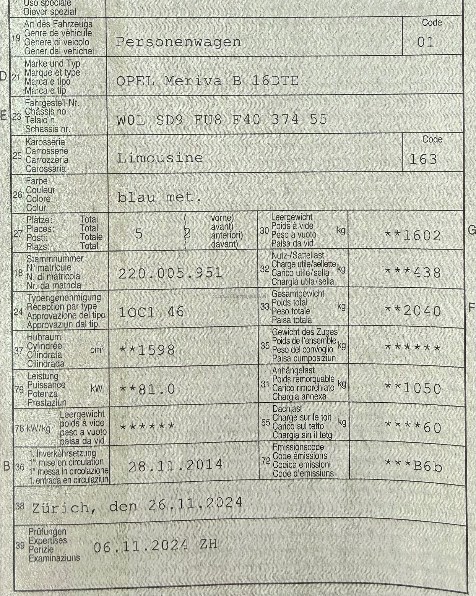 | Letzte Inspektion | 2024-11-01 |