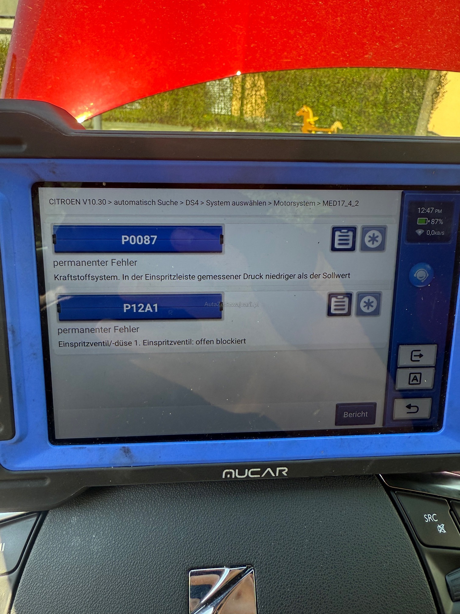 | Kommentar | Fahrzeug fuhr sehr gut, bis das Problem mit dem Ruckeln anfing. Siehe Fehlercode auf Fotos. - Sitzmassage - Parksensoren - Bluetooth Audio & Musik und vieles mehr vor ca. 6 Monaten Steuerkette bei Offizieller Citroen Werkstatt ersetzt. |