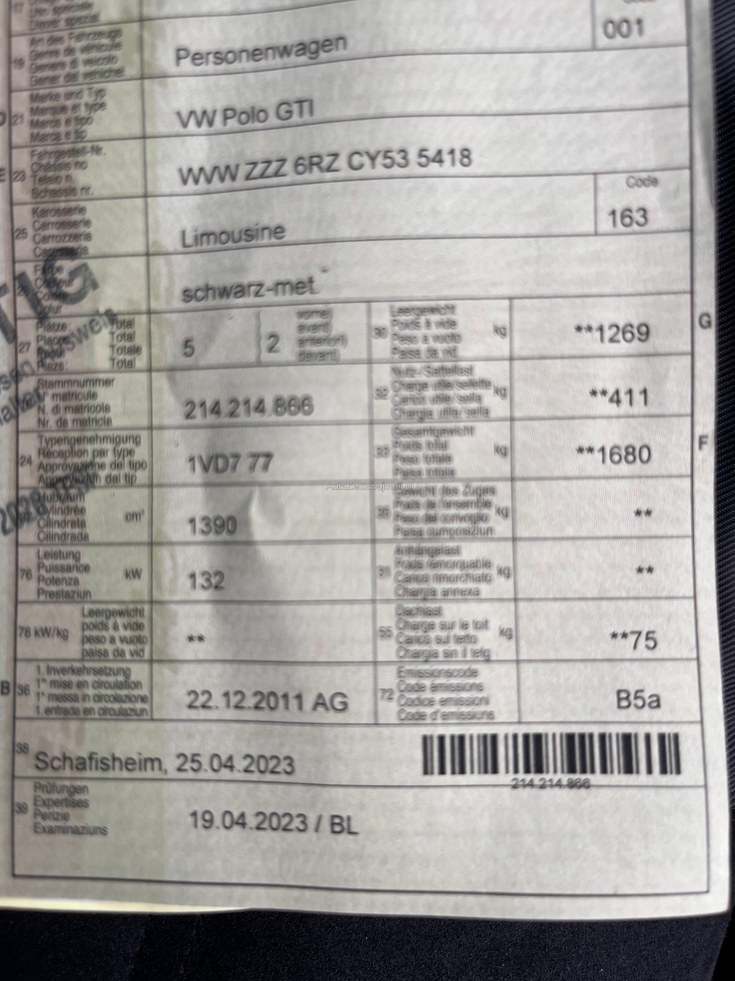 | VIN | WVWXXX |