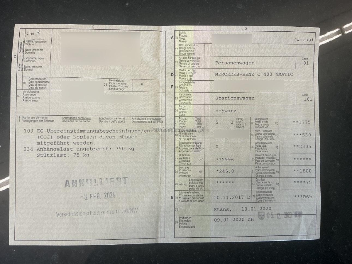| Fahrzeugausweis | Vorhanden |