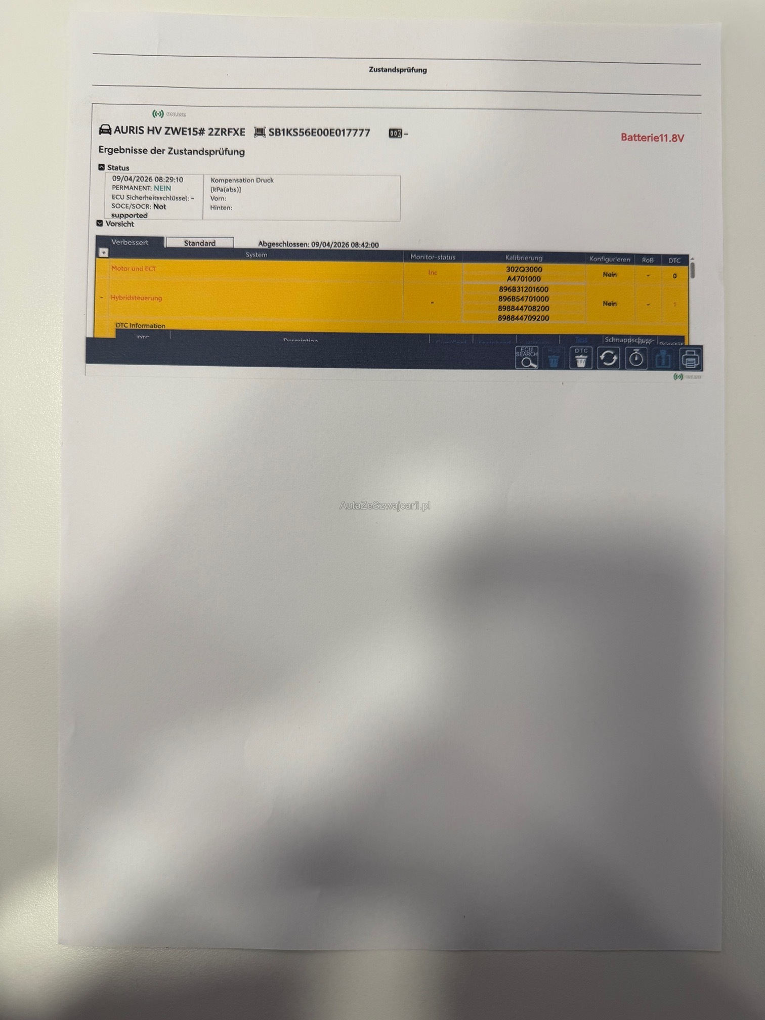 | Kommentar | Es wurde nur der Fehlerspeicher ausgelesen ansonsten keine Werkstatttest durchgeführt oder Diagnose. Fahrzeug ist fahrbar, leuchten aber diverse Fehlerlampen. Schäden siehe Bilder Gebrauchsspuren vorhanden. Kein Karrosserietest durchgeführt. Fahrzeug muss bei erfolgreicher Ersteigerung per 15.04.2026 abgeholt werden! |