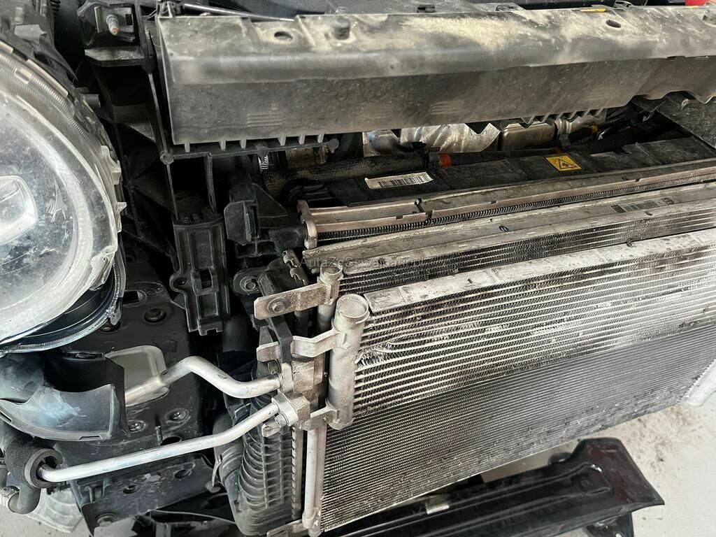 Capot, aile avant, phare cassé, calandre, pare-chocs avant, spoiler, renfort, radiateurs, condenseur, panneau frontal