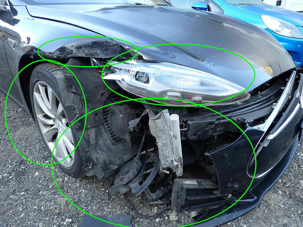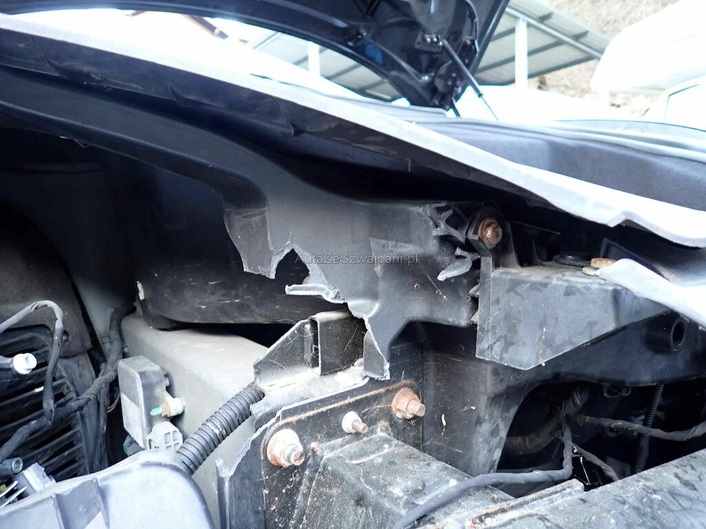 Parechoc av, ailes d-g capot, traverse avant, jante avd, rétroviseur d, radiateurs, phare, coffre av