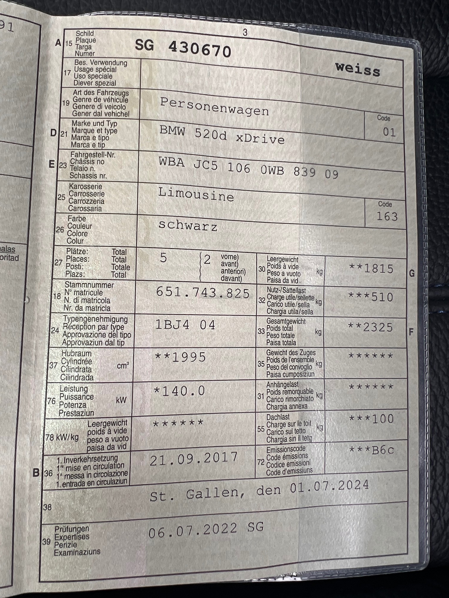 | Innenfarbe | Leder schwarz |