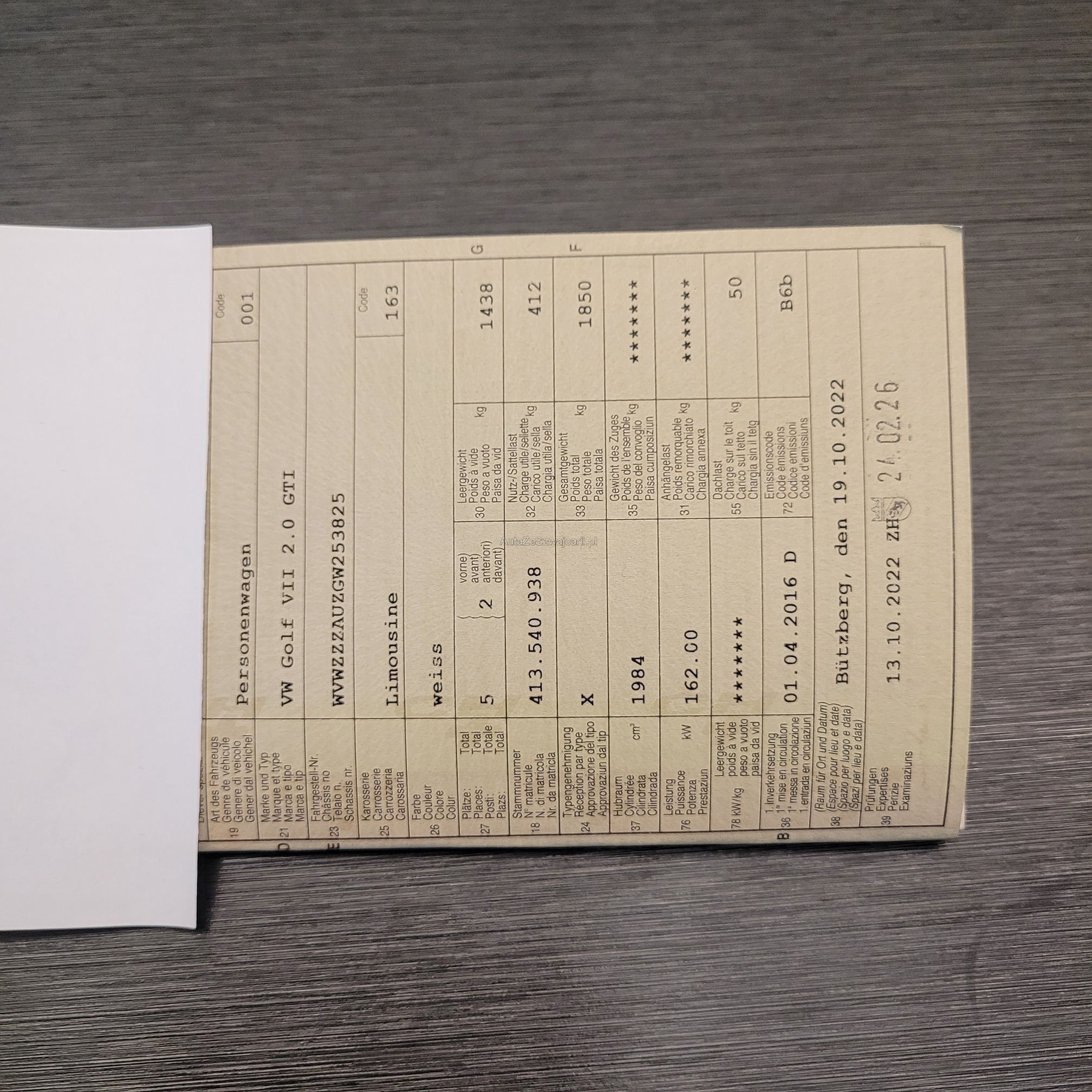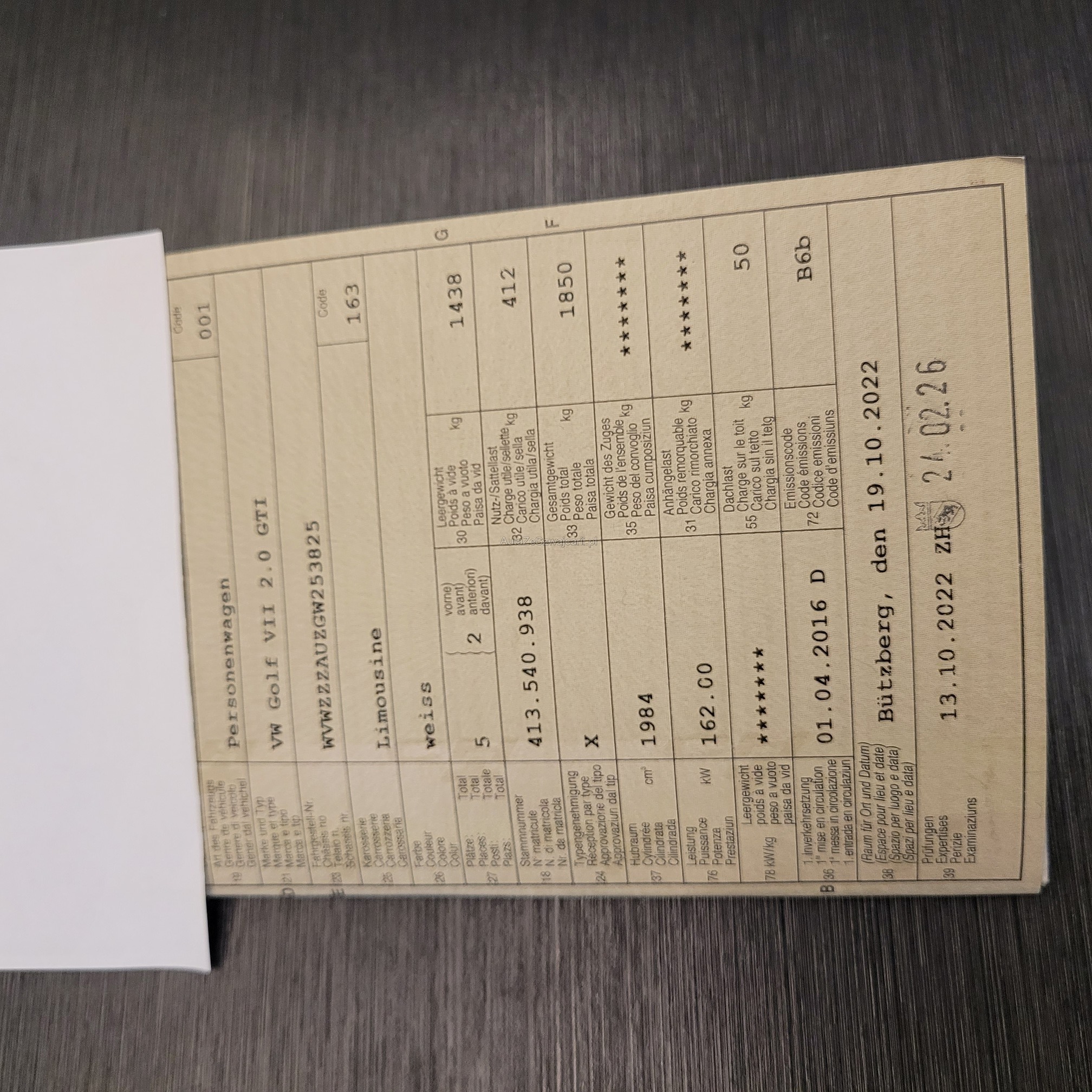 | 1. rejestracja | 1 kwietnia 2016 |
