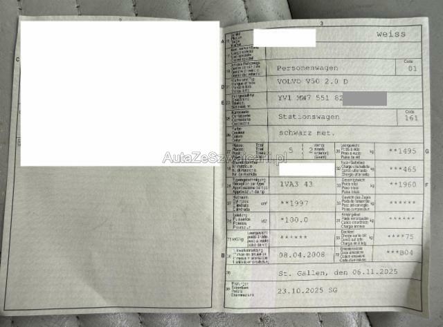 | Condition_and_Equipment | Zustand Fahrzeug ist teilweise ausgebrannt. Fahrzeug weist äusserlich Brandspuren auf. Fahrzeug weist im Innenraum Brandspuren auf. Schlüssel Nur ein Schlüssel vorhanden. Weitere wichtige Hinweise Das Fahrzeug wies am 23.10.2025 bei der MFK einen Kilometerstand von 173’185 km auf und wurde von uns auf rund 175’000 km geschätzt (ohne Gewähr). Serviceheft nicht im Fahrzeug vorhanden. --- Motor Motorschaden. Risiko Getriebe. Achse Vorderachse ist beschädigt. Elektrik Kabelstränge verbrannt, beschädigt, abgerissen. Innenraum Unangenehme Geruchsentwicklung im Innenraum (z.B. Treibstoff, Lebensmittel, Rauch, etc.) Glas Windschutzscheibe ist gerissen. Sonstige Schäden Div.Carrosserie Teile sind leicht beschädigt. Weitere Beschädigungen - Fahrzeug im Frontbereich ausgebrannt. - Schaden und Ausstattung gemäss beiliegenden Fotos. - Weitere nicht aufgeführte und nicht fotografisch festgehaltene oder verdeckte Schäden sind möglich! - Die tatsächliche Ausstattung kann von der veröffentlichten Ausstattung abweichen. --- Serienaustattung Klimaautomat Airbag Fahrer und Beifahrerseite Elektronische Wegfahrsperre Elektrische Fensterheber vorne + hinten Aussenspiegel elektrisch verstellbar und heizbar Tempomat Bordcomputer Servolenkung Seitenairbag Fahrer und Beifahrerseite Nebelscheinwerfer Zentralverriegelung mit Fernbedienung Aussentemperaturanzeige Lederlenkrad Staub- und Pollenfilter Innenspiegel automatisch abblendbar Lenkrad verstellbar SIPS Kopf-/ Schulterairbag Regensensor ABS und EBV Elektr. Bremskraftverteilung Lederschalthebel Textilfussmatten Bremsassistent EBA Tagesfahrlichtschaltung Reserve-Notrad Stossfänger und Seitenschutzleisten in Wagenfarbe Mittelarmlehne vorne mit Staufach Dekorausstattung Aluminium 2 Make-up-Spiegel beleuchtet Befestigungssystem für Tragtaschen DSTC Fahrdynamikregelung IDIS Fahrerinformationssystem WHIPS Schleudertrauma-Schutzsystem Audiosystem Performance Radio/ CD Rücksitzbank asymmetrisch geteilt umklappbar Fahrersitz verstellbar mit Lendenwirbelstütze Mittelarmlehne h mit Getränkehalter/ Staufach Beifahrersitz verstellbar mit Lendenwirbelstütze Leichtmetallräder 16" Cygnus Multifunktions-Lederlenkrad Fahrwerk komfortorientiert Colorverglasung Dieselpartikelfilter Polsterung DALA Textil/ T-Tec Keine Gewähr auf die Angaben der Serienausstattungen Sonderausstattung Lederpolster Metallic-Lackierung Dachreling Audiosystem High Performance Radio/ CD MP3 Pack Sport-Styling Sportlederlenkrad mit Aluminiumdekor |