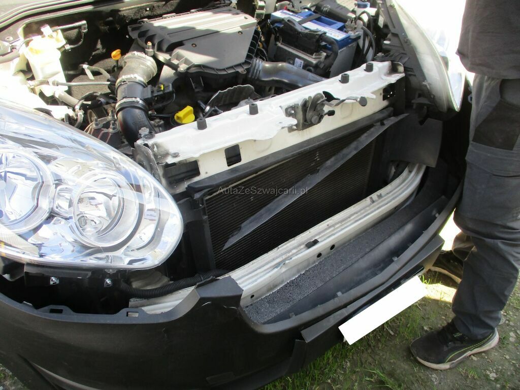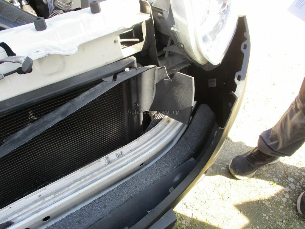 Starker Frontprall; alle Teile am Vorbau sind beschädigt. Stosstange, beide Scheinwerfer, beide Kotflügel, das Kühlergrill und der Schlossträger sind zerstört. Der Klima-und Wasserkühler sind beschädigt. Die Quertraverse ist eingedückt. Di Türe VL wurde beim aufmachen leicht beschädigt.