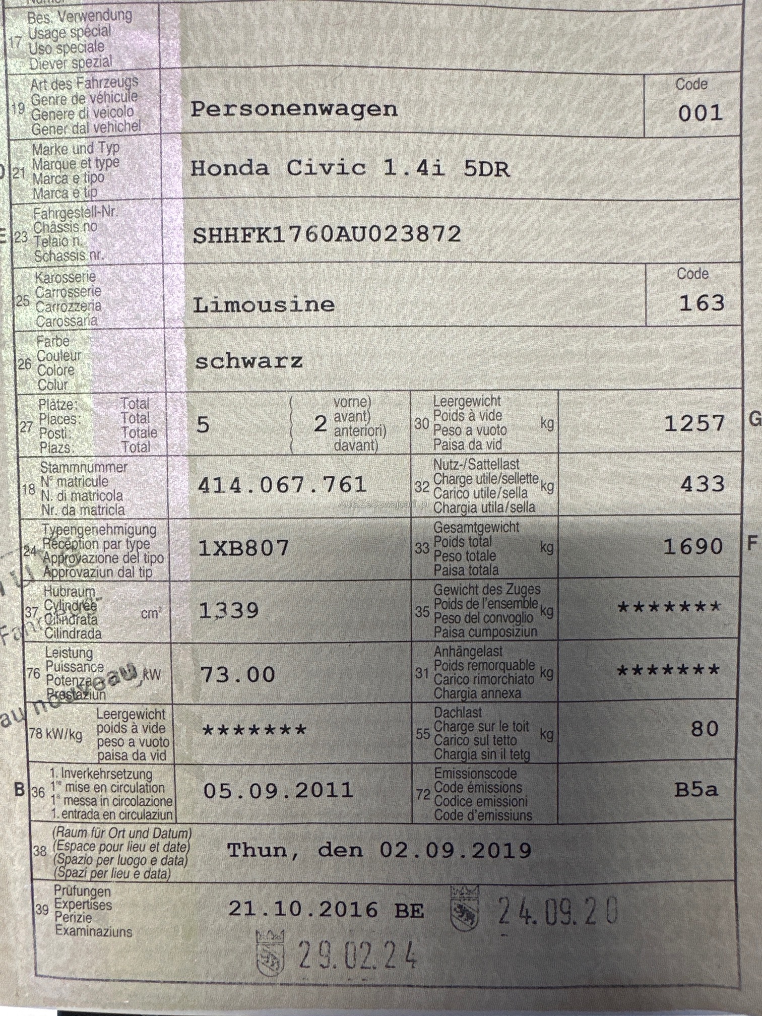 | Kommentar | Ab Platz ohne Garantie. Am Fahrzeug wurde kein Werkstatttest gemacht, das heisst: Für sichtbare oder nicht sichtbare Mängel wird nicht gehaftet. Wir testen und kontrollieren nicht alle Funktionen des Fahrzeugs. Das Risiko liegt somit vollumfänglich beim Käufer. Fahrzeug kann nach Voranmeldung vor Ort besichtigt werden. Nachdem der Höchstbietende den Zuschlag erhalten hat, gibt es keine Nachverhandlung, auch wenn nicht deklarierte Mängel zum Vorschein kommen sollten. Fahrzeug ab Platz, ohne Garantie und ohne Nachwährschaft. Wandelung und Minderung werden wegbedungen. Kauf auf eigenes Risiko. |