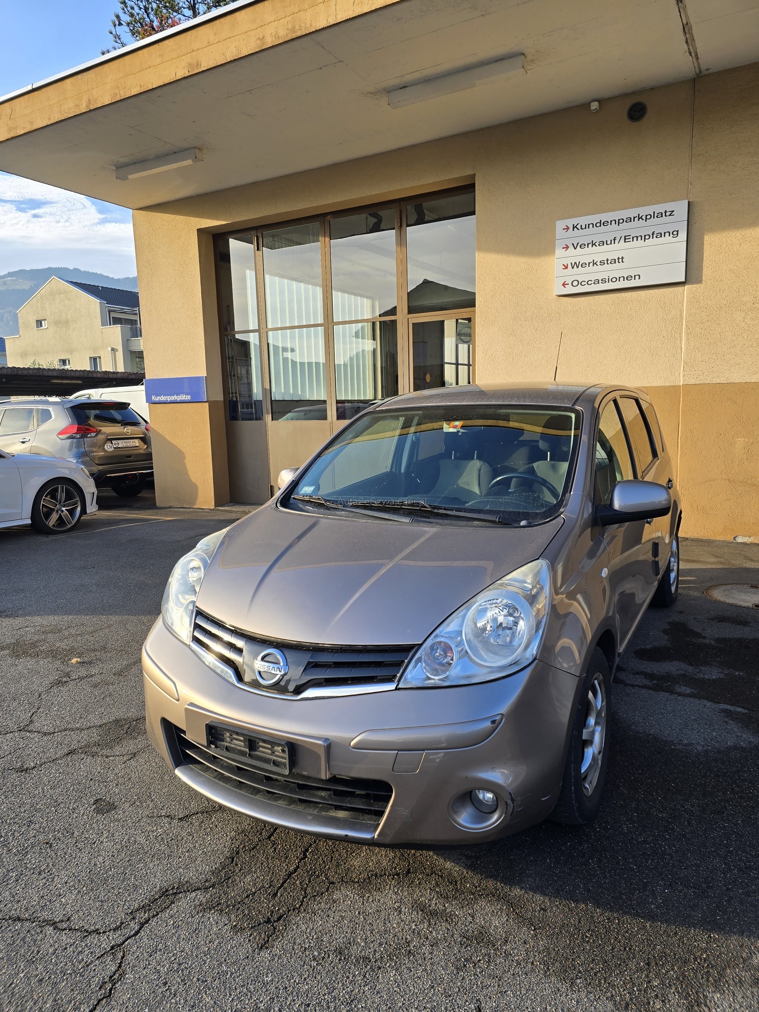 | Kommentar | Nissan Note I-Way mit Top Ausstattung!! Motor Getriebe Kupplung i.O fährt soweit problemlos. Keine Mechanische und Technische Prüfung. Ab Platz ohne Garantie. Innen und Aussen stark gebraucht!! Diverse Carosserie Schäden Aussen ( siehe Bilder)!!! Fahrzeug muss innert 5 Tagen abgeholt werden. |