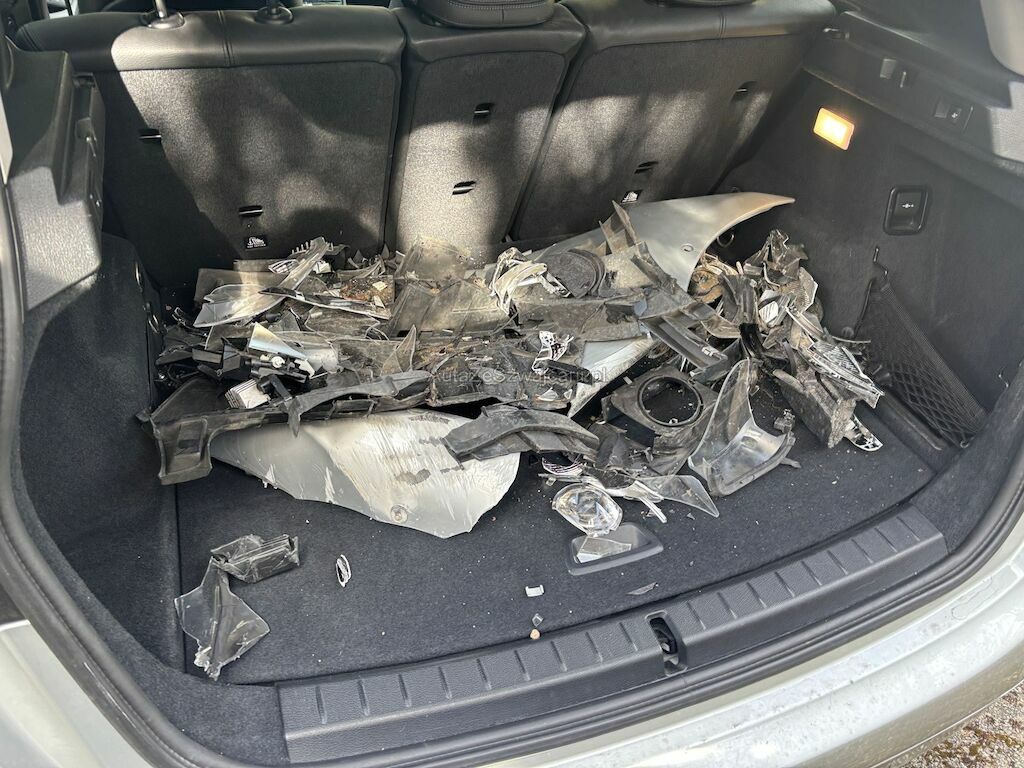 Kollisionsschaden vorne links mit Beschädigung von: Stossfänger, Frontmaske, Kühlerpaket, Kotflügel, Türe vorne, Längsträger links, Scheinwerfer, Motorhaube, Vorderachse