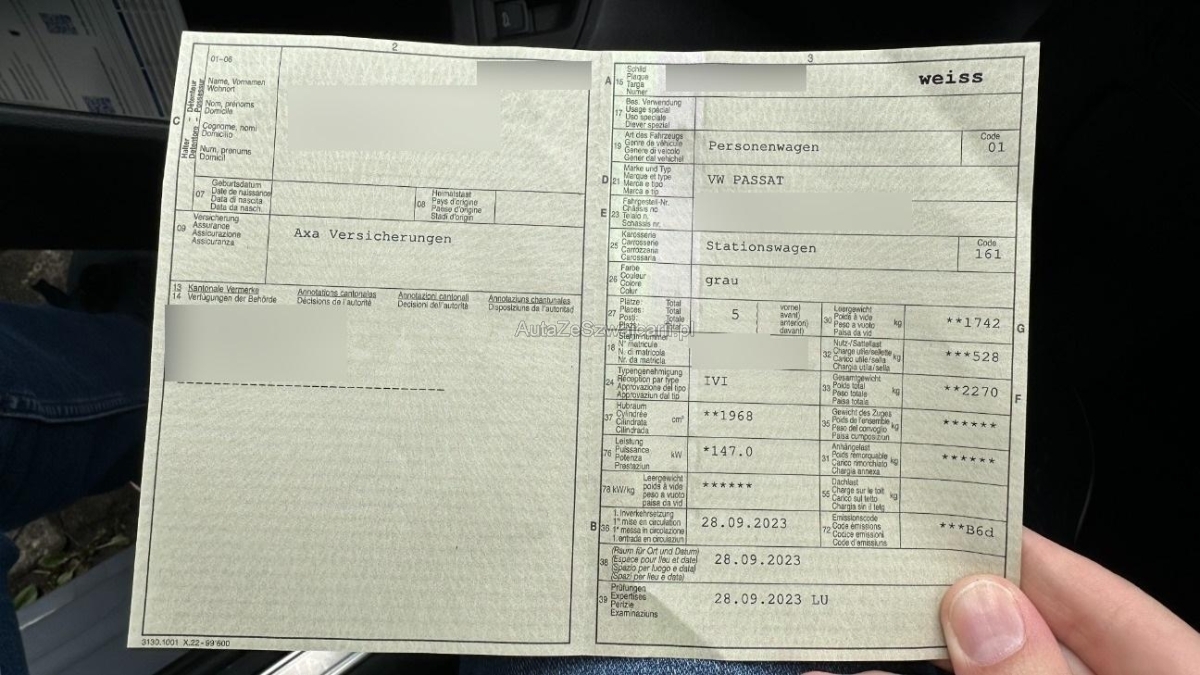 | Fahrzeugausweis | Vorhanden |