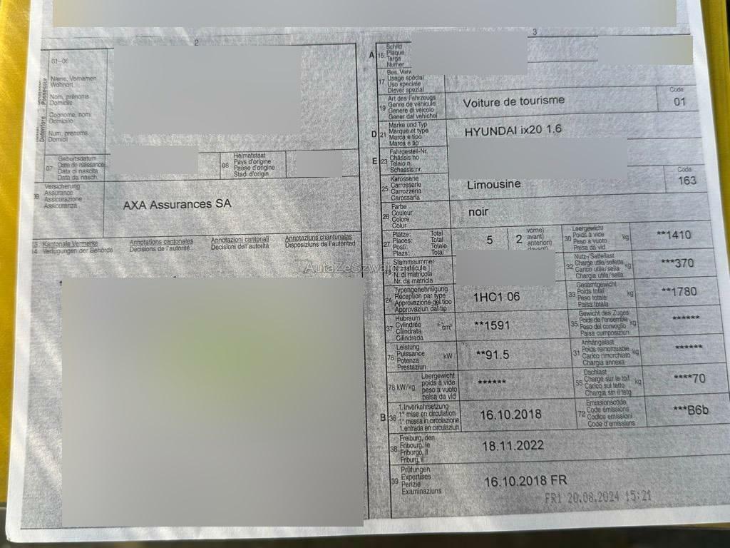 | Fahrzeugausweis | Vorhanden |
