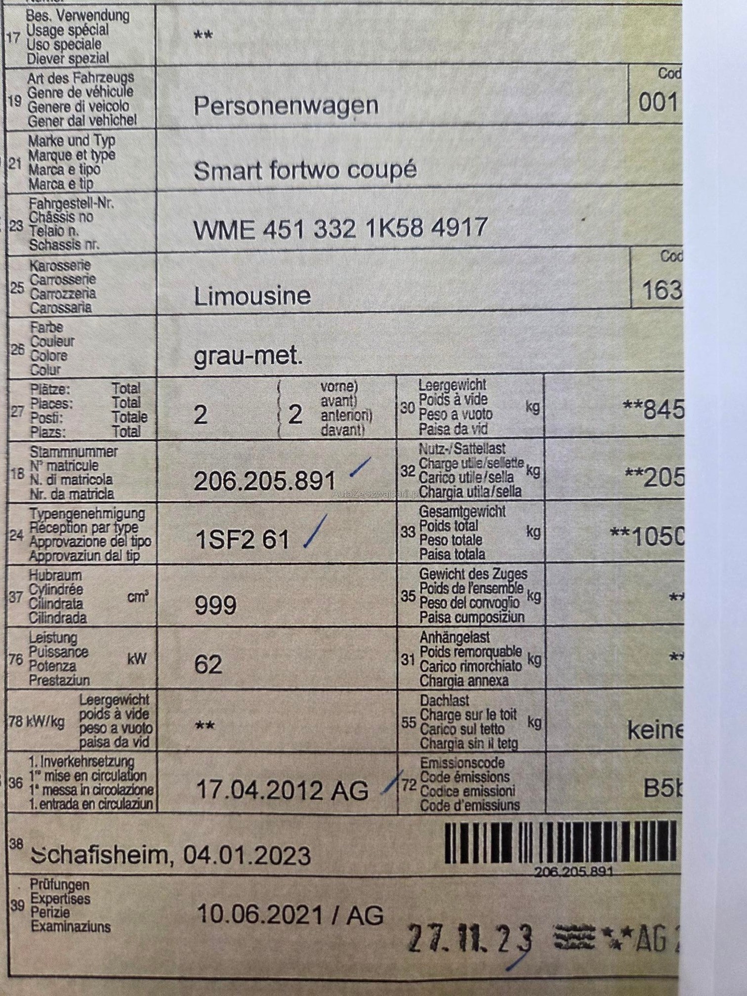 | Letzte Inspektion | 2023-11-01 |