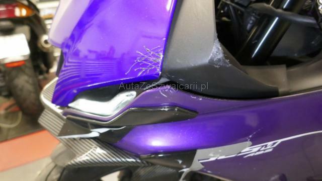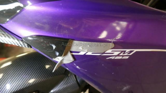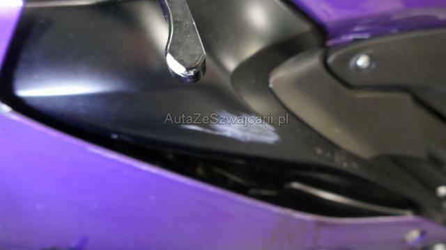 | Condition_and_Equipment | Schlüssel Nur ein Schlüssel vorhanden. Auspufftopf Auspufftopf ist nicht original. Zweirad-Kategorie Motorrad Weitere wichtige Hinweise Nur ein Schlüssel, kein Serviceheft und keine technischen Unterlagen. Keine Garantie. --- Links Linke Seite beschädigt. Ist auf die linke Seite gefallen. Verschalung oben links verkratzt. Verschalung unten links verkratzt. Verschalung hinten links verkratzt. Front Gabel Risiko. Lenker verbogen. Rahmen Rahmen verzogen/beschädigt. Weitere Beschädigungen Sturz links: Gabel-T-Stück, Rahmen, halber Lenker links, Tacho, Fugenkopfhalterung, linker Hebel, linker Griff, linker Lenker, linker Lenker, vordere Verkleidung und linke Seite, Flügel links, Blinker vorne links, Tankdeckel links, Ständer, Crash-Pad links, Geschwindigkeitswahlschalter Fusskeil und Fahrerplatine, Beifahrerplatine und Fusskeil links, Ständerhalterung «Racing» arg, zerkratzt, verformt, beschädigt, gebrochen. Gefahr an der Vordergabel. --- Serienaustattung Garantie 4 Jahre Ausstattung Leichtmetall-Felgen Metallic-Lackierung |