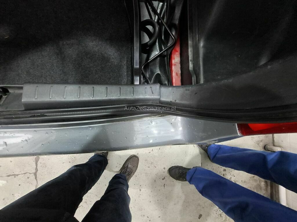 Stossstange deformiert, Heckklappe und Heckblech eingedrückt.