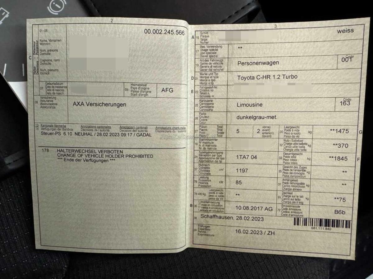 | Fahrzeugausweis | Vorhanden |
