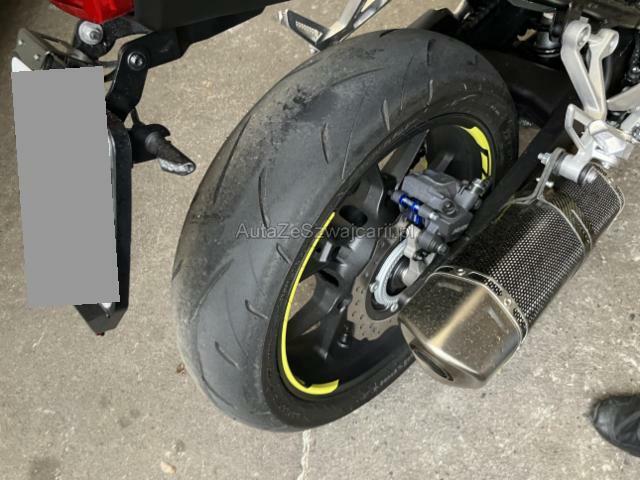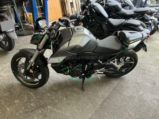 | Condition_and_Equipment | Zustand Fahrzeug muss transportiert werden (Höhe und Breite beachten). Fahrzeug ist NICHT fahrbar. Bereifung Fahrzeug wird mit Sommerräder abgegeben. Sonstiges Fahrzeugdokumente vorhanden. Schlüssel Nur ein Schlüssel vorhanden. --- Links Linke Seite beschädigt. Rechts Rechte Seite beschädigt. Heck Verschalung hinten verkratzt. Abgasanlage deformiert. Rahmen Rahmen verzogen/beschädigt. Motor Öl-/Kraftstoffaustritt vorhanden Sonstige Schäden Div. Teile sind leicht beschädigt. Weitere Beschädigungen Beschädigung links und rechts: Rahmen möglicherweise verzogen. Kurbelwelle, Endschalldämpfer, beide Spiegel, beide Brems und Kupplungshebel, Lichtmaschinendeckel und Fussrasthalter verzogen und gerissen, müssen ersetzt werden. Div. anbauteile verkratzt, müssen lackiert werden. --- Sonderausstattung LSVA Transportkosten (Importeur) |