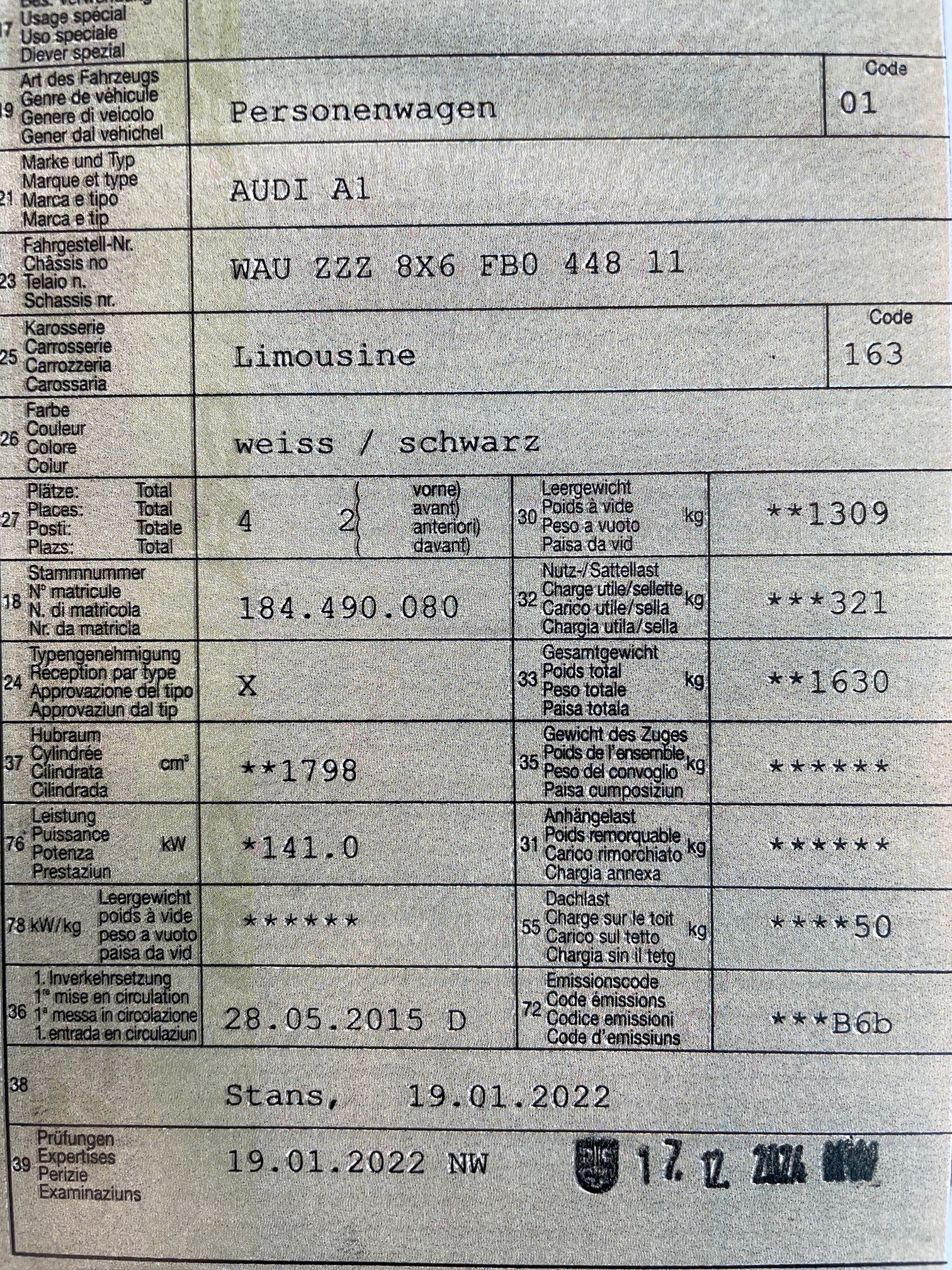 | VIN | WAUXXX |