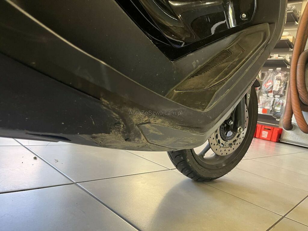 - Face avant, fourche, phare avant, phare, levier de frein, embout de guidon, bas de caisse droit, repose pied droit, carénage arrière gauche, poignée passager, boite à air, carter variateur, feu arrière endommagés et cassés.