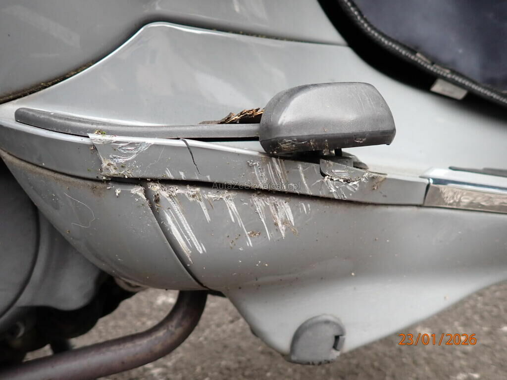Garde-boue avant, tablier, poignée, rétroviseur, guidon, bas de caisse, marche-pied, protection d'échappement, poignée arrière, top case, compteur rayé