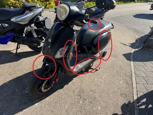 | Condition_and_Equipment | Demontage Persönliche Gegenstände oder Ladegut im Fahrzeug werden entfernt. Zustand Fahrzeug ist rollbar. Schlüssel Nur ein Schlüssel vorhanden. Zweirad-Kategorie Roller --- Links Linke Seite beschädigt. Ist auf die linke Seite gefallen. Verschalung oben links verkratzt. Verschalung oben links gebrochen. Verschalung unten links verkratzt. Verschalung hinten links verkratzt. Front Schutzblech vorne defekt. Gabel Risiko. Heck Verschalung hinten verkratzt. Sonstige Schäden Div. Teile sind leicht beschädigt. Weitere Beschädigungen - Griff links gebrochen - Risiko Lenker --- Ausstattung Elektrostarter Hauptständer |