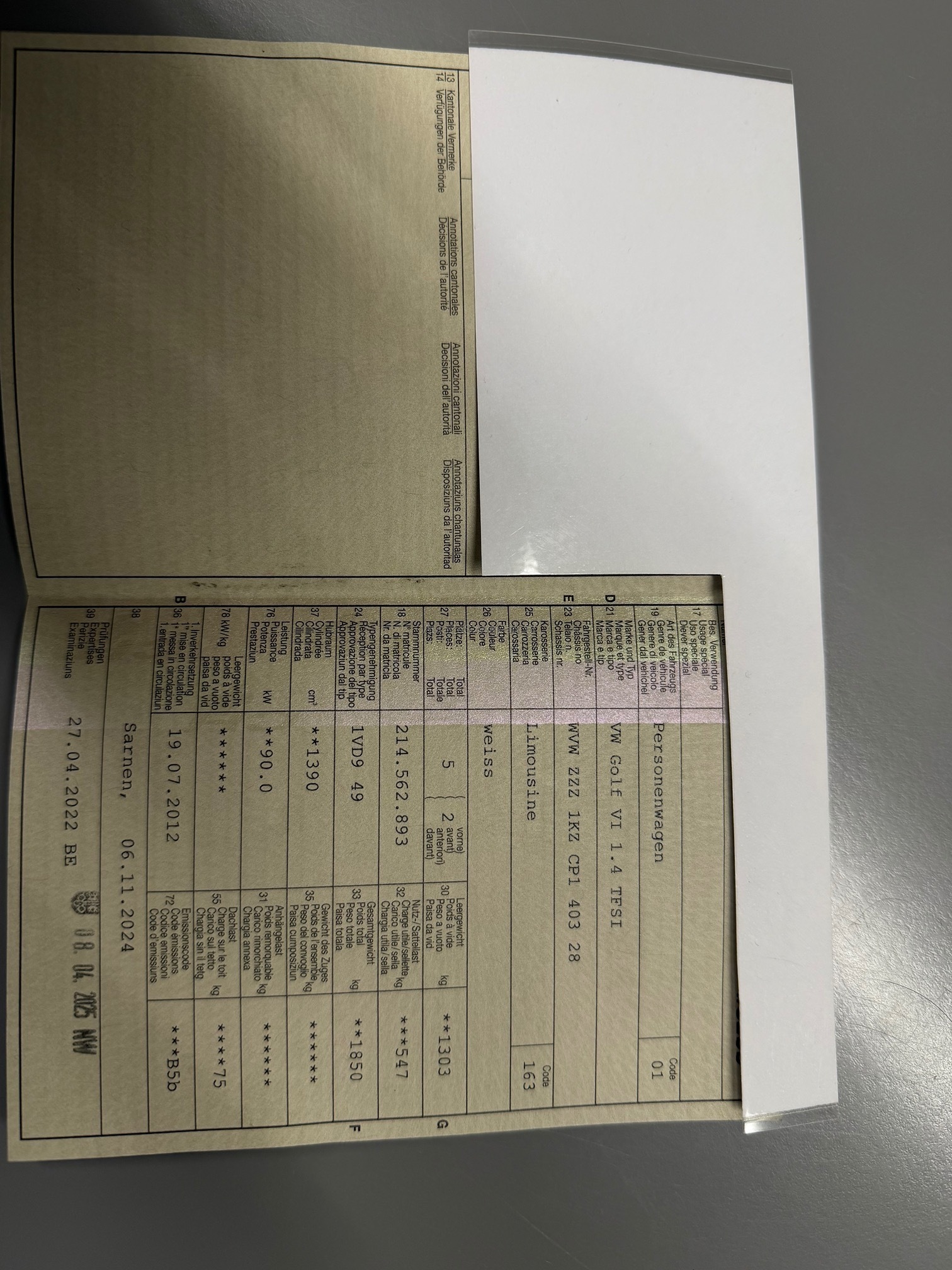 | VIN | WVWXXX |