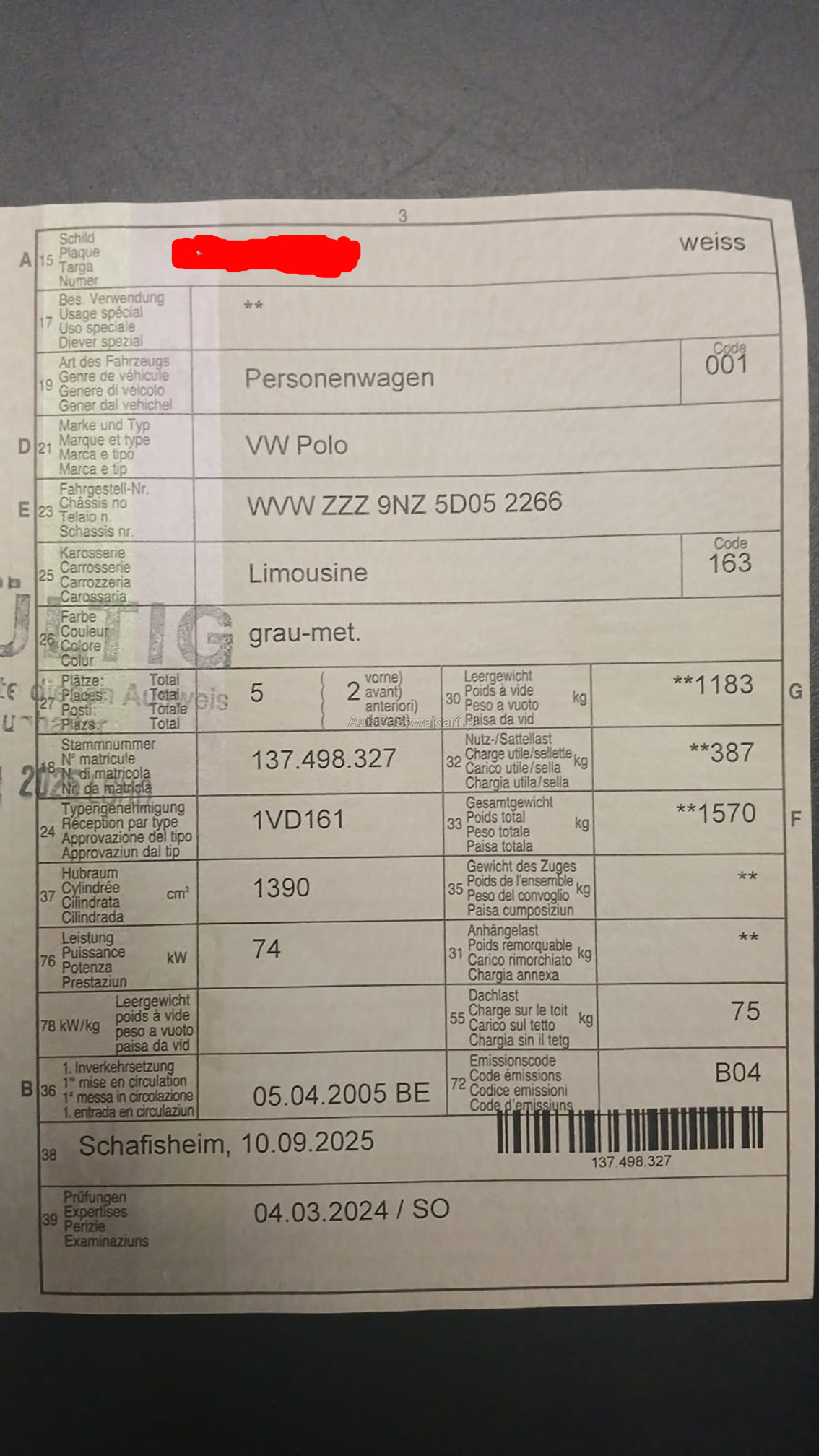 | Kommentar | Wir haben keine grosse Analyse des Fahrzeuges gemacht. Es läuft nicht. Ist vielleicht auch interessant für Teile. |