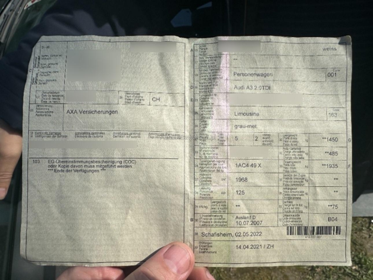 | Fahrzeugausweis | Vorhanden |