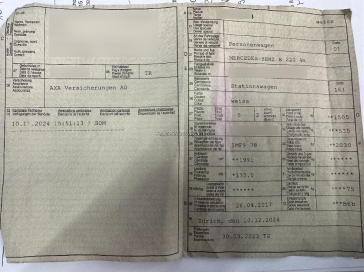 | Fahrzeugausweis | Vorhanden |