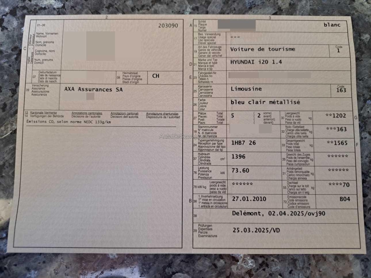 | Fahrzeugausweis | Vorhanden |