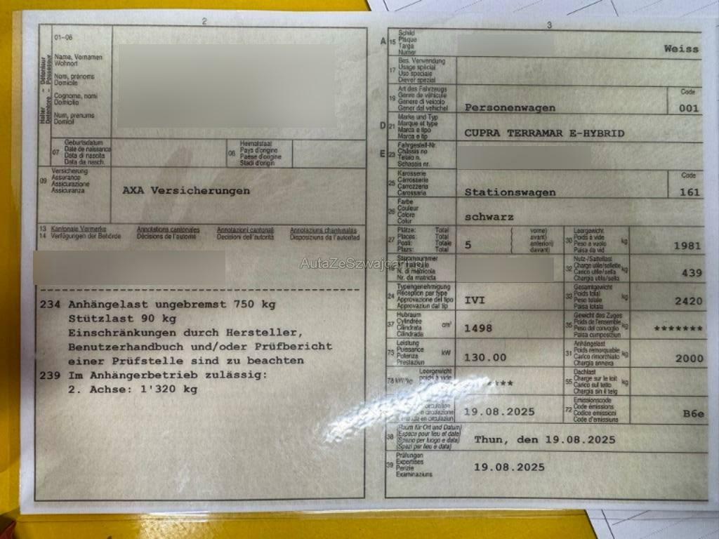 | Sonderausstattung | Anhängevorrichtung (Einklappbar) mit Anhängerrangierassistent, CUPRA Service -Kostenlose Wartung gemäss Wartungstabelle des Herstellers und erforderliche Verschleis Reparaturen, jeweils inklusive CUPRA Original Teile -5 Jahre oder 100000 km (je nachdem, was zuerst erreicht wird) |