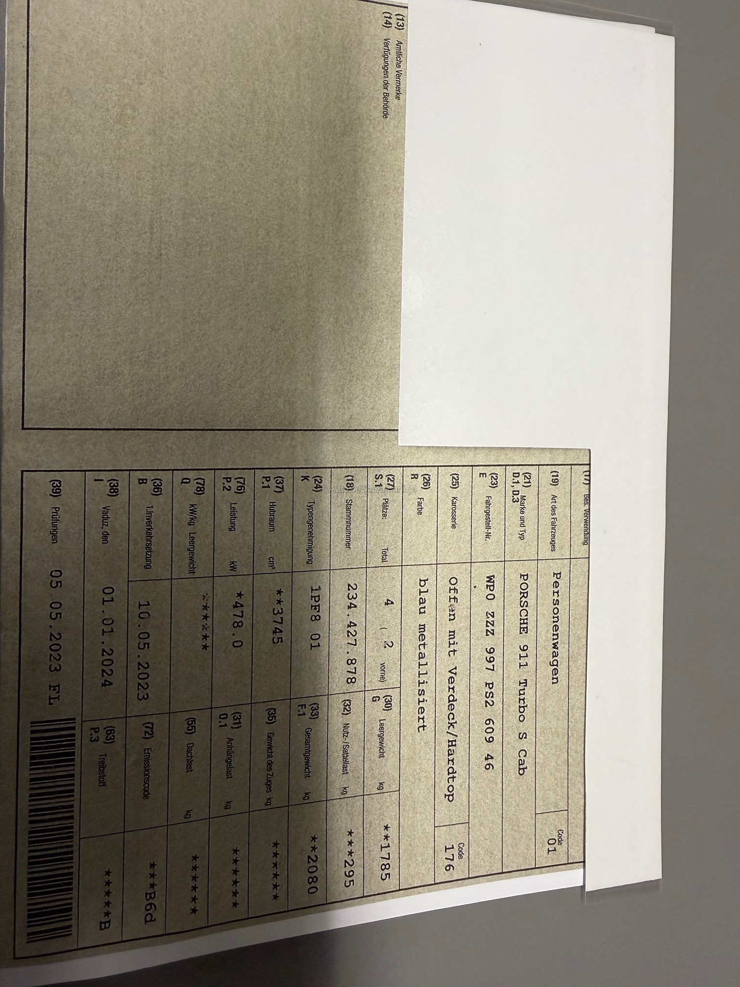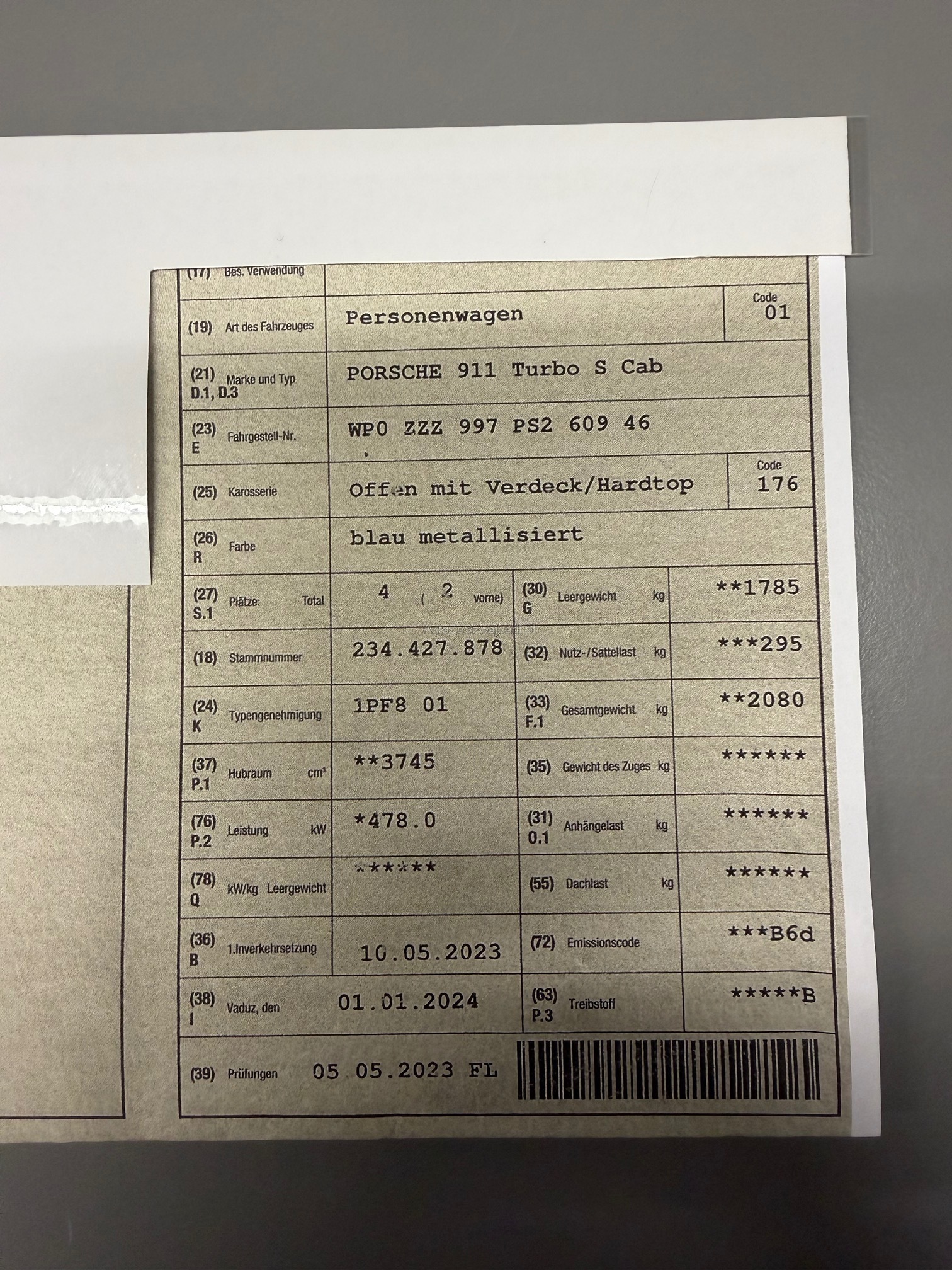 | VIN | WP0XXX |