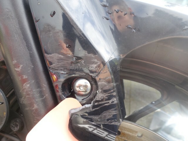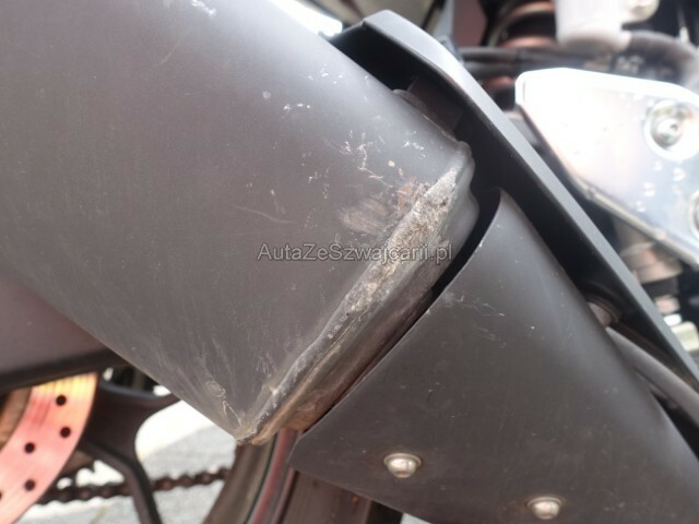 | Condition_and_Equipment | Schlüssel Nur ein Schlüssel vorhanden. --- Front Schutzblech vorne defekt. Gabel beschädigt. Lenker verbogen. Weitere Beschädigungen Kotflügel Vorne — Gabel Vorne — Verkleidung vorne Rechts — Kühler — Lenker — Hebel + Rückspiegel + Endkappe — Gehäuse — Platine — Auspuff. |