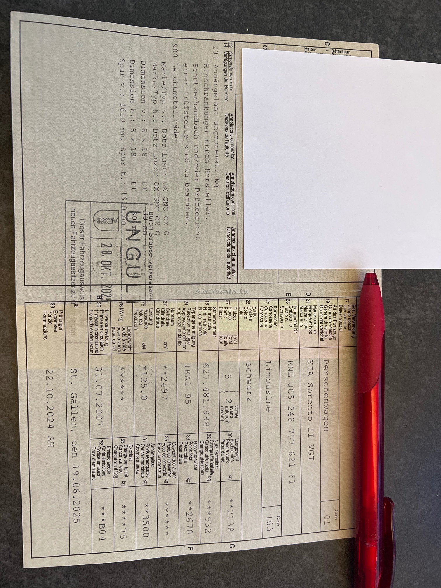 | Kommentar | Fahrzeug ist sofort Verfügbar AHK 3500kg / MFK 22.10.2024 - Probefahrt I.O, Getriebe schaltet sauber. - Motor hat Ölverlust, Ursache unbekannt - Schäden/Gebrauchsspuren gemäss Fotos - Kofferraum hat zwar Hundehaare, riecht aber im Fahrzeug kaum nach Hund. Am Fahrzeug wurde kein Werkstatttest gemacht (Für sichtbare oder nicht sichtbare Mängel wird nicht gehaftet). Wir testen und prüfen nicht alle Funktionen des Fahrzeugs. Das Risiko liegt somit vollumfänglich beim Käufer. Nach Erhalt des Zuschlags, gibt es keine Nachverhandlung, auch wenn nicht deklarierte Mängel zum Vorschein kommen. Ab Platz ohne Garantie oder Gewährleistung, Wandelung und Minderung werden wegbedungen. |