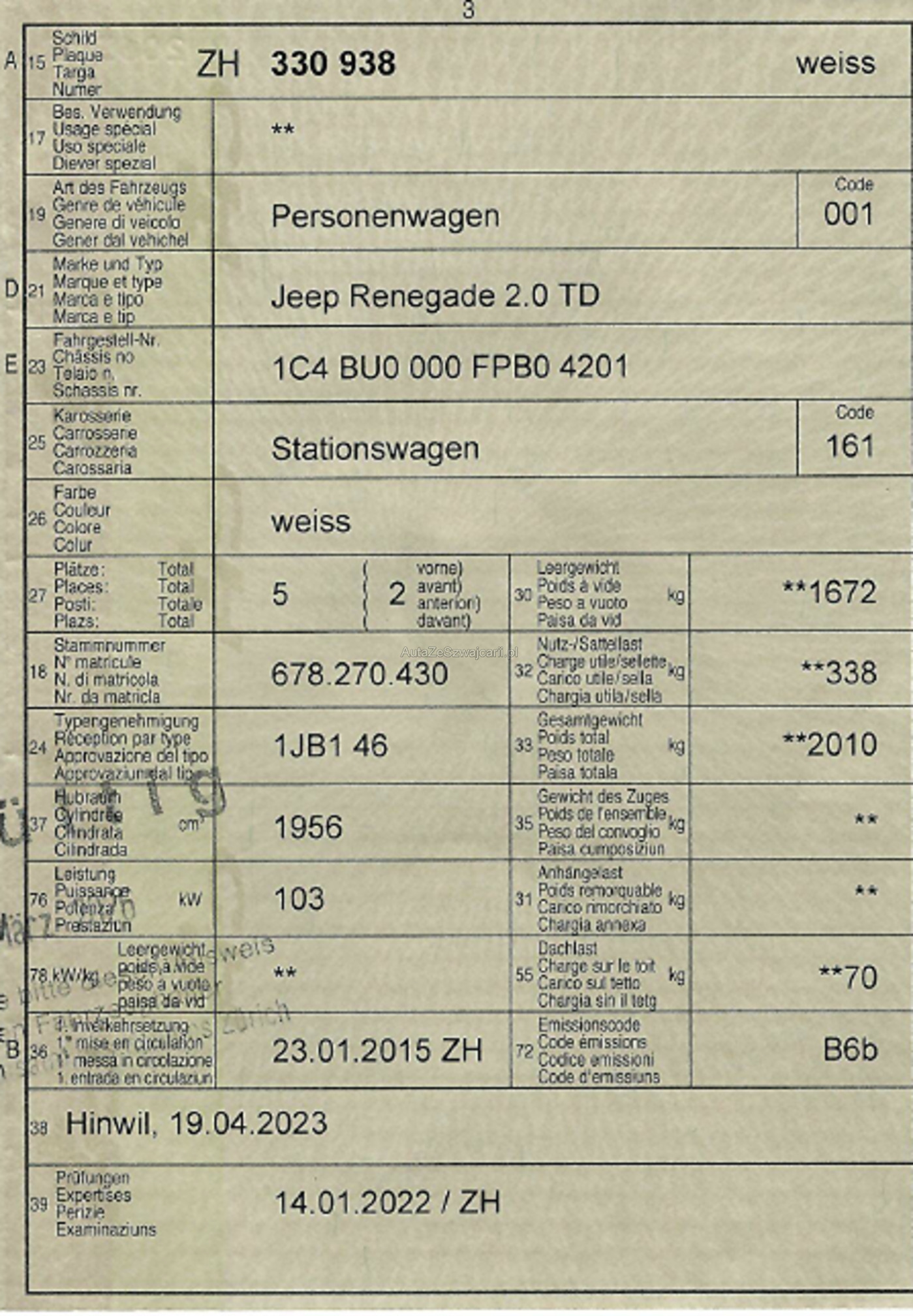 | Kommentar | Am Fahrzeug wurde kein Werkstatttest gemacht (Für sichtbare oder nicht sichtbare Mängel wird nicht gehaftet). Wir testen und prüfen nicht alle Funktionen vom Fahrzeug. Das Risiko liegt somit vollumfänglich beim Käufer. Nach Erhalt des Zuschlages, gibt es keine Nachverhandlung, auch wenn nicht deklarierte Mängel zum Vorschein kommen. Ab Platz ohne Garantie oder Gewährleistung, Wandelung und Minderung werden wegbedungen. |
