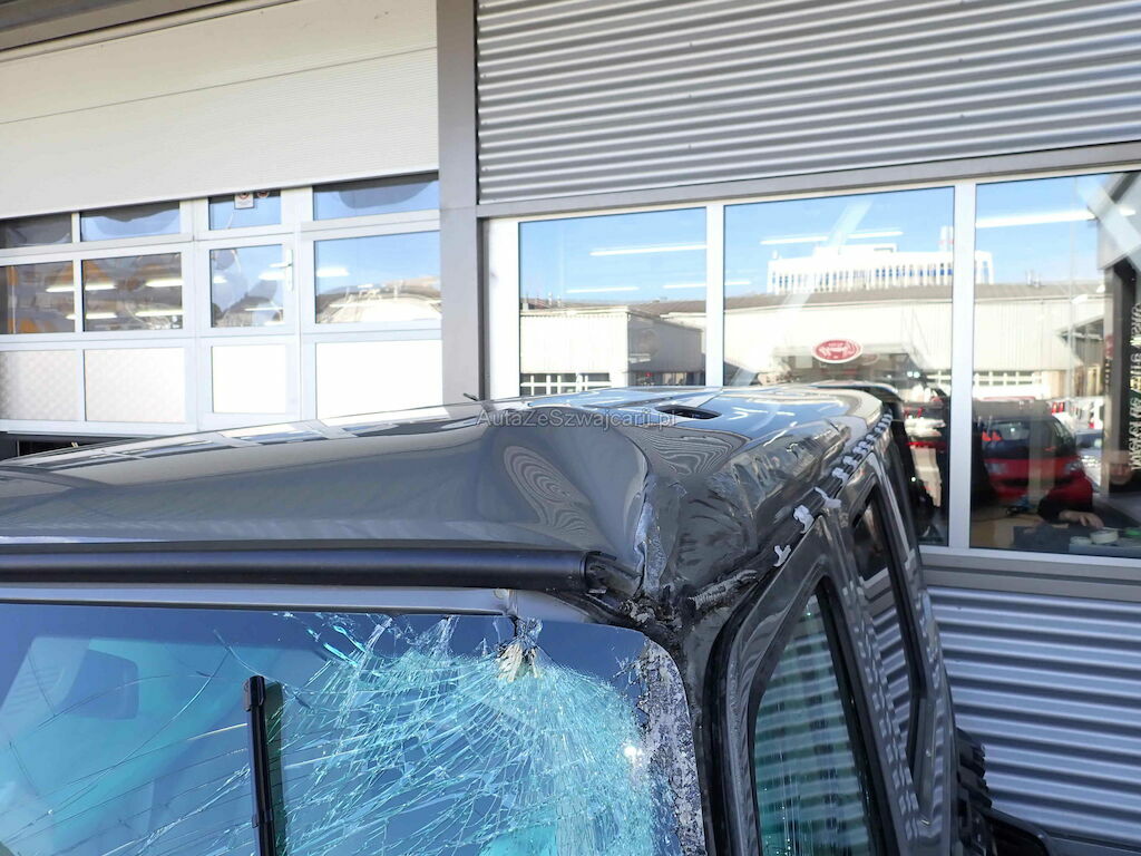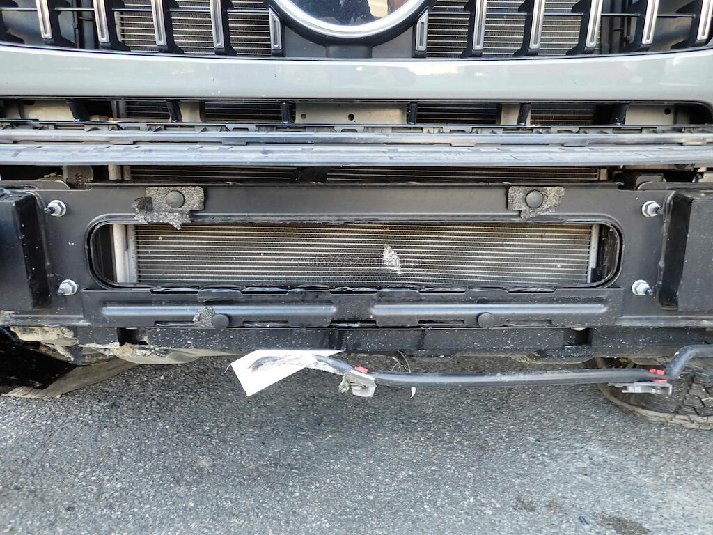 Choc avant + chute sur flanc gauche: pare-chocs, cache et grilles de pare-chocs, traverse, radiateurs, capot moteur, calandre, phares, ailes avec élargisseurs, pare-brise, marche-pied, rétroviseur, caisse cpl avec pavillon, portes, vitres, jantes, berceau et suspension, direction, airbags, ceintures, moteur (bloqué).