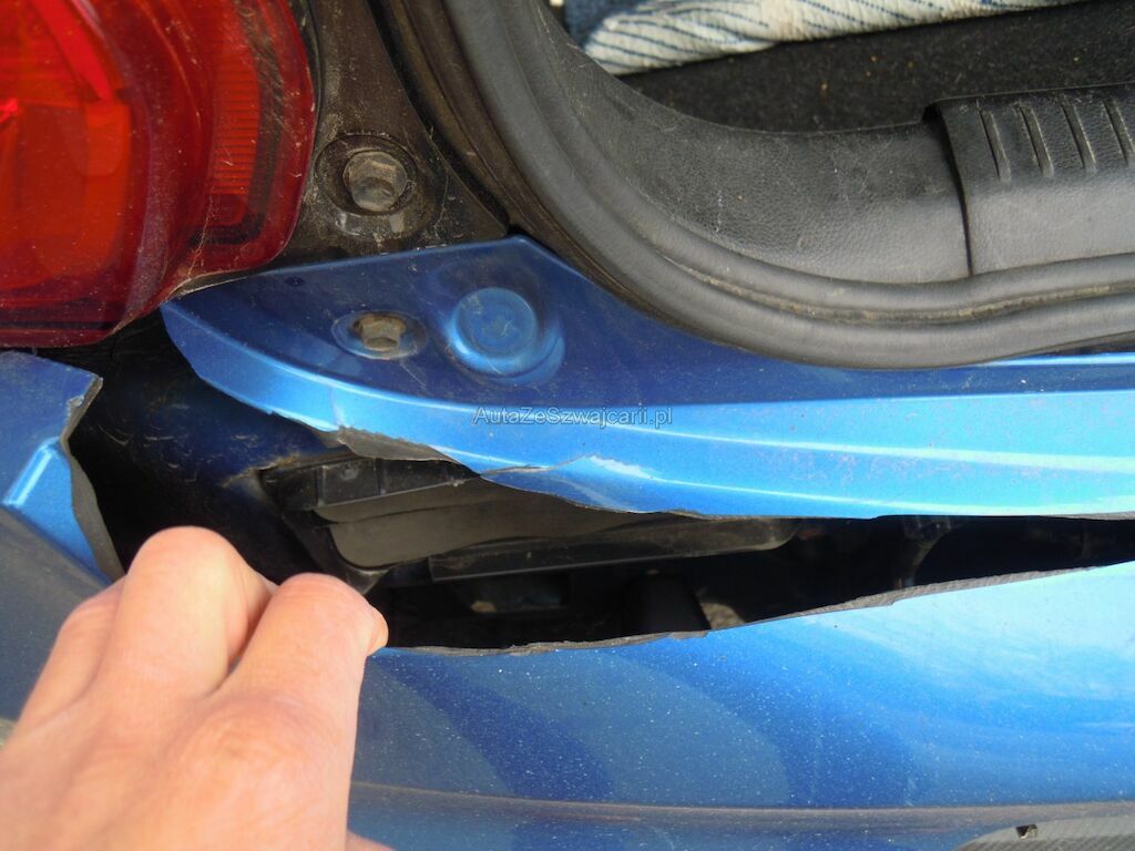 Dommage zone arrière: Pare-chocs, feu gauche cassés, tôle de jupe, renfort seuil de coffre enfoncés, hayon déformé, sortie échappement droite pliée.
