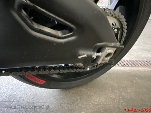 | Schadensbeschreibung | Beschreibung der Schäden: Die Felge hinten, die Hinterachsschwinge, die Fussrasten links, der Schalthelbel, der Auspuff komplett, der Motordeckel, der Wasserkühler, der Ölkühler sind deformiert. Die Seitenverkleidungen vorne rechts und links, der Rückspiegel, der Bremshebel haben Kratzer. |