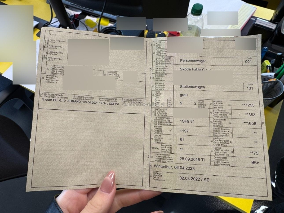 | Fahrzeugausweis | Vorhanden |