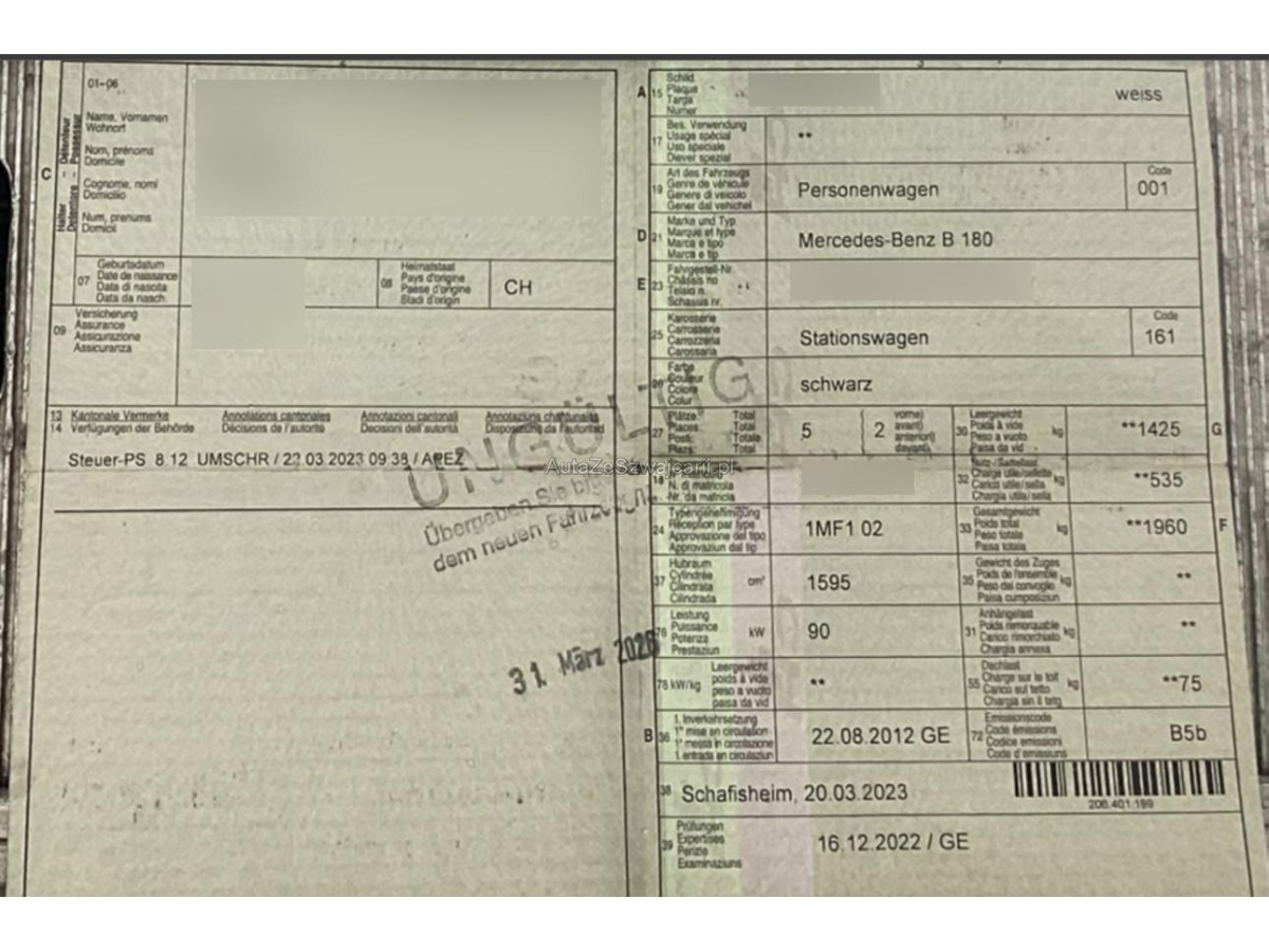 | Fahrzeugausweis | Vorhanden |