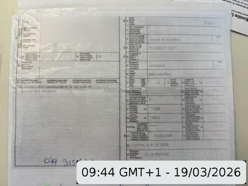 | Fahrzeugausweis | Vorhanden |